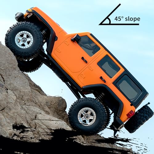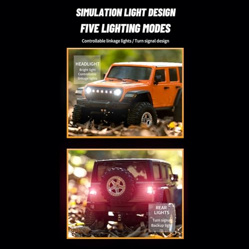Powerful Brush Motor & Waterproof ESC: The power adopts a high torque external carbon brush black leather motor, with a 20A waterproof brush electric speed controller, which enables the car to generate strong output power, low linear attitude, and can run and climb.