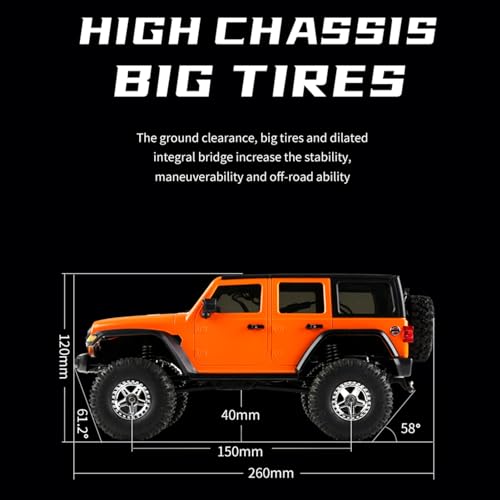 High Chassis and Big Tires: The high ground clearance of the chassis, big tires and dilated integral bridge increase the stability of the vehicle body and provide greater maneuverability and off-road capabilities. Challenge quite a few terrain, off-road, sand, rock, road, and so forth.