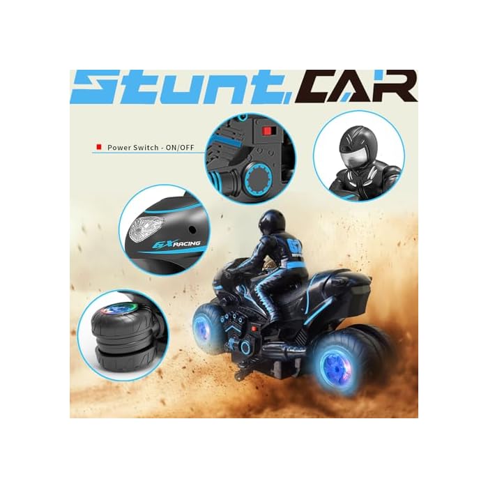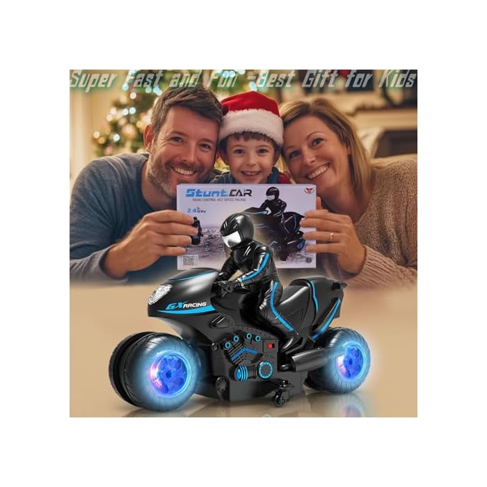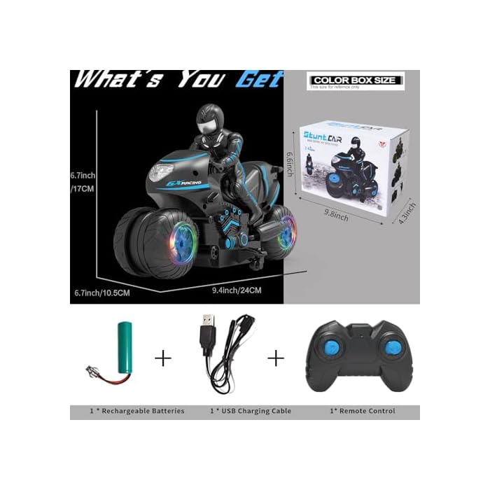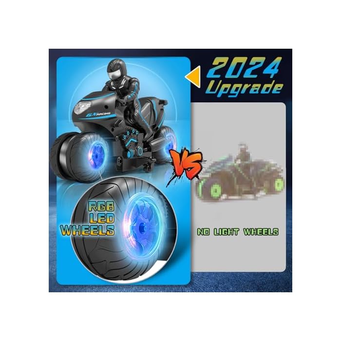 Eulogia Remote Control Motorcycle Toys New Upgraded RGB Wheels Lights, RC Motorbike with 2-in-1 Remote, Gesture Sensing Stunts Dirt Bike, 360° Rotating High Speed Motocross Car for Boys Girls Gift Amazon.com Price: $28.99 (as of 17/07/2025 22:57 PST- Details) & FREE Shipping.