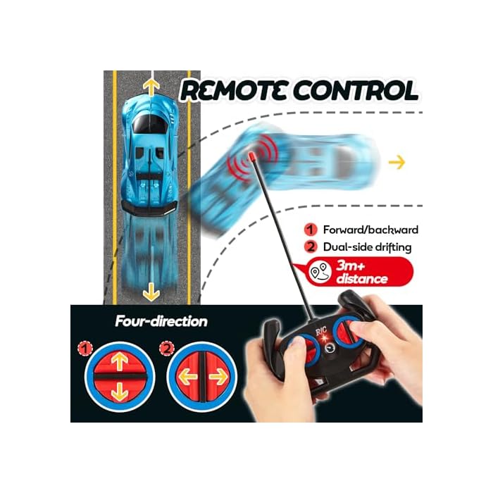 Educational and Fun: In the process of playing, children want to cooperate and coordinate their hands, eyes and brain to operate the RC car, which not only stimulates the development of children’s hands and senses, but also allows children to be informed the driving sport of racing car. Improve parent-child interaction and friendship in racing competition, let your child feel the fun of competition.