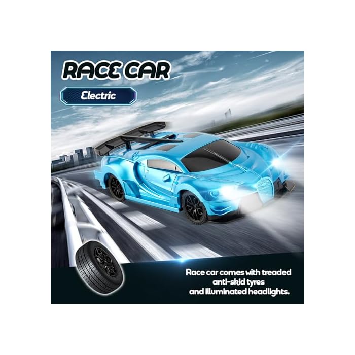High Speed RC Car: The smooth, flexible rubber wheels have a clear tread pattern and a perfect racing system that reduces friction between the tyre and the ground. With this unique design of the wheels, the car with high speed performance can make the racing game more attractive.. The model can be driven on smooth surfaces, so it can be used both indoors and outdoors.