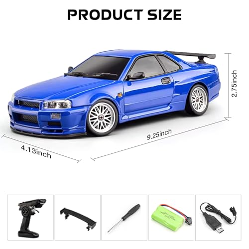LD1899 1/18 RC Drift Car GTR R34 2.4GHz RWD with Gyroscope on-Road Alloy Body Shell Racing Cars Radio Control