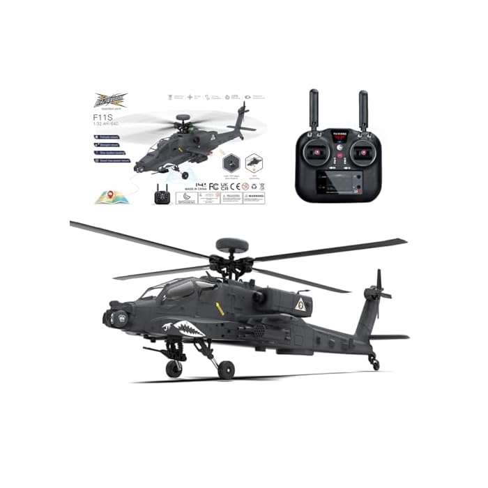 Razordon F11-S AH64 RC Helicopter for Adults, 1/32 Scale 2.4G 6CH Dual-axis Co-Drive Flybarless Stunt RC Military Helicopter with GPS Flight Control System (RTF GPS Smart Version)