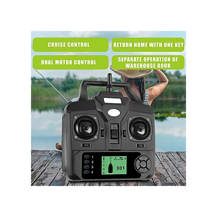 VALUE-FOR-MONEY PERFORMANCE: smart remote control distance 100-500m (clear and non-interfering water surface), navigation can be controlled separately, low noise, high performance, with night fishing LED spotlights and three bait bins and dual-motor design, running faster Fast, the loadable weight is about 1-2 kg.