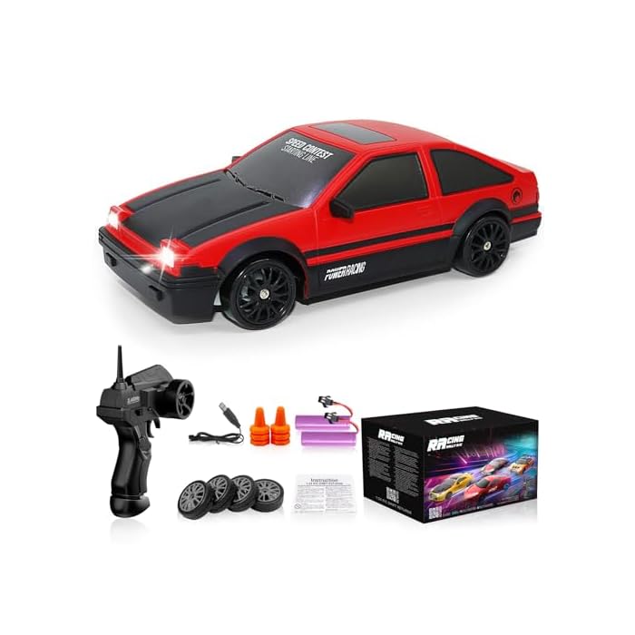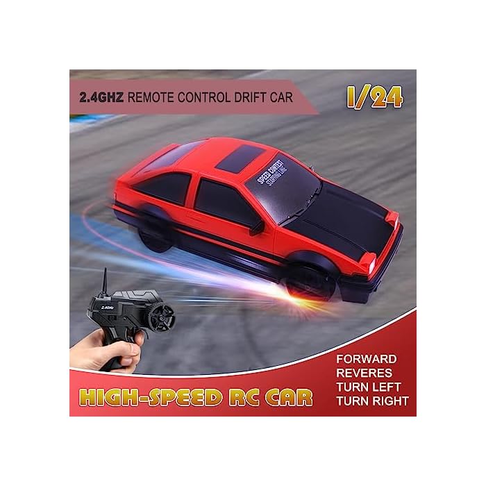 High Speed Drifting Car: 1: 24 scale racing car, remote Keep watch over Glide car can go forward, backward, turn left and right, other full-scale synchronous Keep watch over functions. The Remote Keep watch over is very easy to besimple operation. Power hard shell is not easily damaged by affect all over driving. The speed can reach up to 15KM/H, which provide you a faster high-speed racing experience. The front of the car has cool lights, and night driving is more attractive