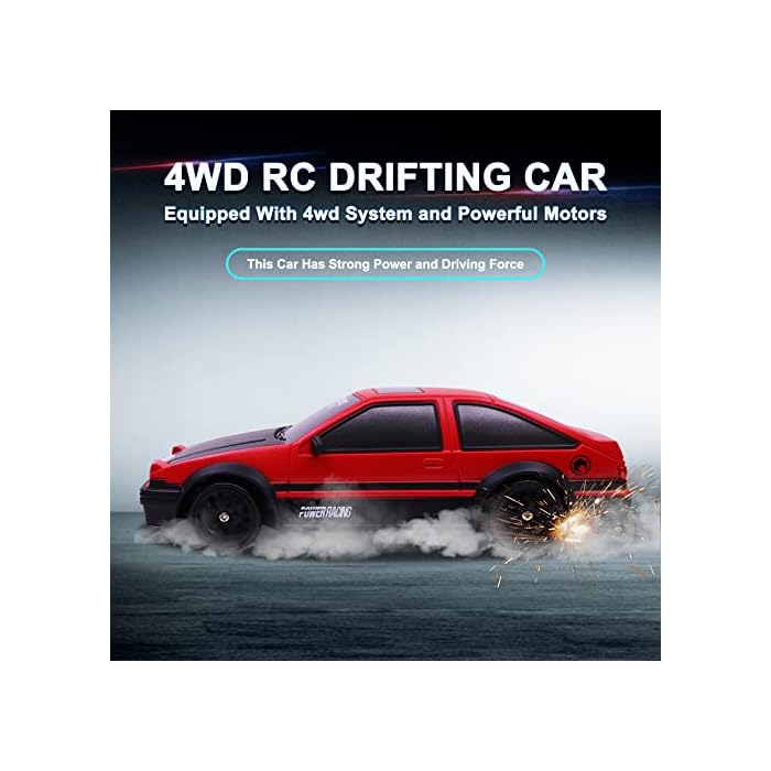 4 Wheels Drive High Speed: This RC drift car designed with 4 wheel-drive system, equipped with 4WD system and powerful motors this car has strong power and driving force. Let the remote control drift car to conquer all kinds of harsh or drift on road easil, it will give you you a great racing experience. [Charging time: About 2 hours. Playing time: Approx 20-30 minutes]