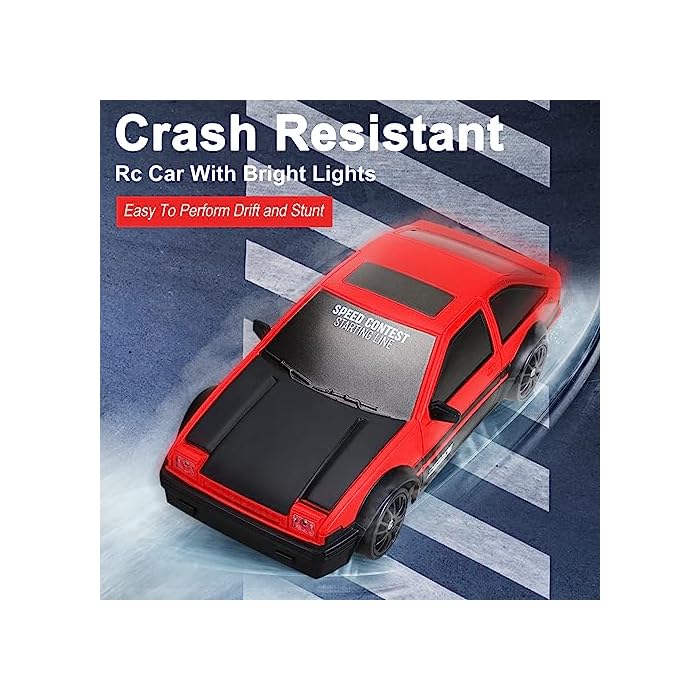 High Speed Drifting Car: 1: 24 scale racing car, remote control drift car can go forward, backward, turn left and right, other full-scale synchronous control functions. The Remote control is very easy to besimple operation. Power hard shell is not easily damaged by impact during driving. The speed can reach up to 15KM/H, which provide you a faster high-speed racing experience. The front of the car has cool lights, and night driving is more attractive