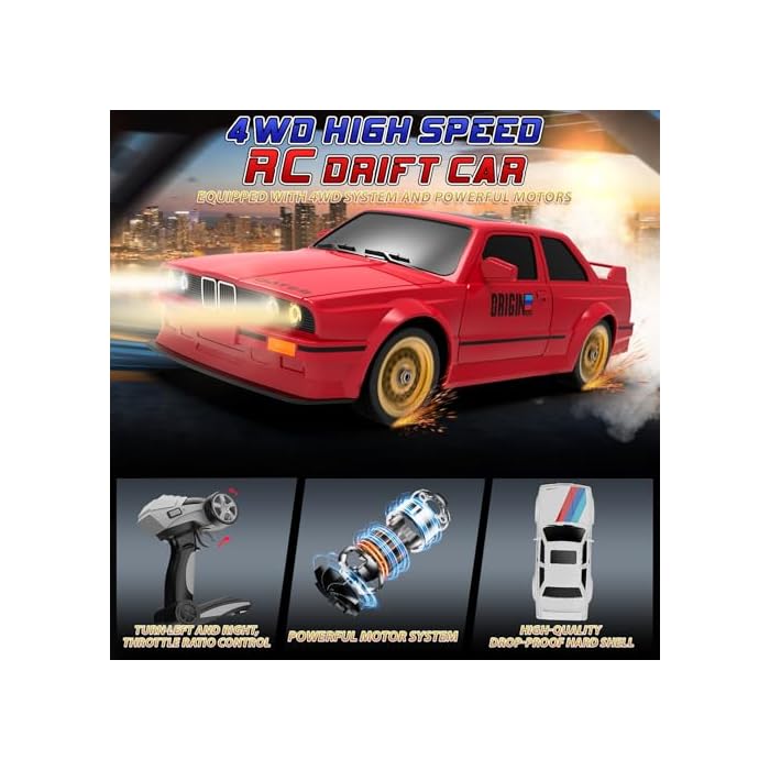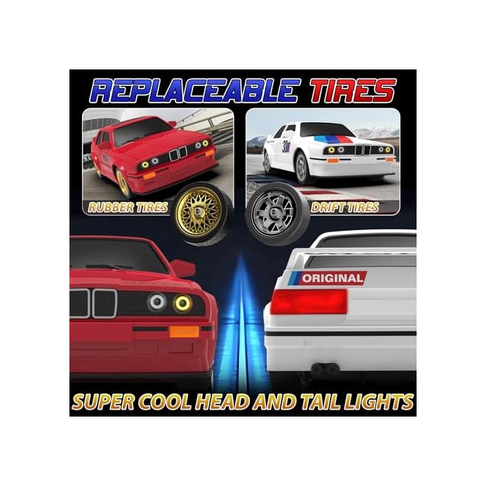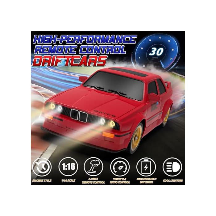 Remote Control Cars 1:16 Scale RC Drift Car 2.4Ghz 30KM/H High Speed 4WD RTR Racing Car with Drift Tires LED Lights 2PCS Rechargeable Batteries RC Sport Cars Toys for Adults Boys Girls Kids Gift
