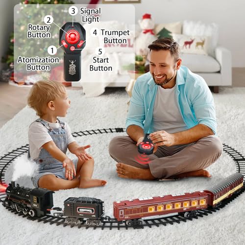 Train Set – Remote Control Train Toys w/Luxury Track & Lighting Passenger Carriage, Rechargeable Battery Train Sets w/Smoke,Whistle & Lights, Toys Decoration for 3 4 5 6 7 8 Boys Girls