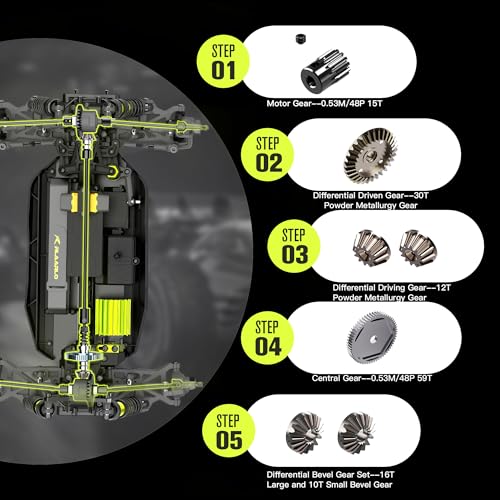 2845-3600KV brushless motor with heat sink, RC cars use 16T1144 carbon steel motor gear, equipped with 21T motor gear for upgrade, violent high speed; brushless 45A independent switch ESC with cooling fan, beef up 2-3S lithium battery, can effectively support the stability and reliability of ESC; 11KG small servo with small body and big power, 7075 aluminum alloy hardened gear with big torque and more durable